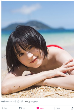 発売に先駆け、「寝そべりゆきちゃん」な水着姿の先行カットが本人の公式X(旧Twitter)で公開され、ファンから興奮の声が殺到していました。